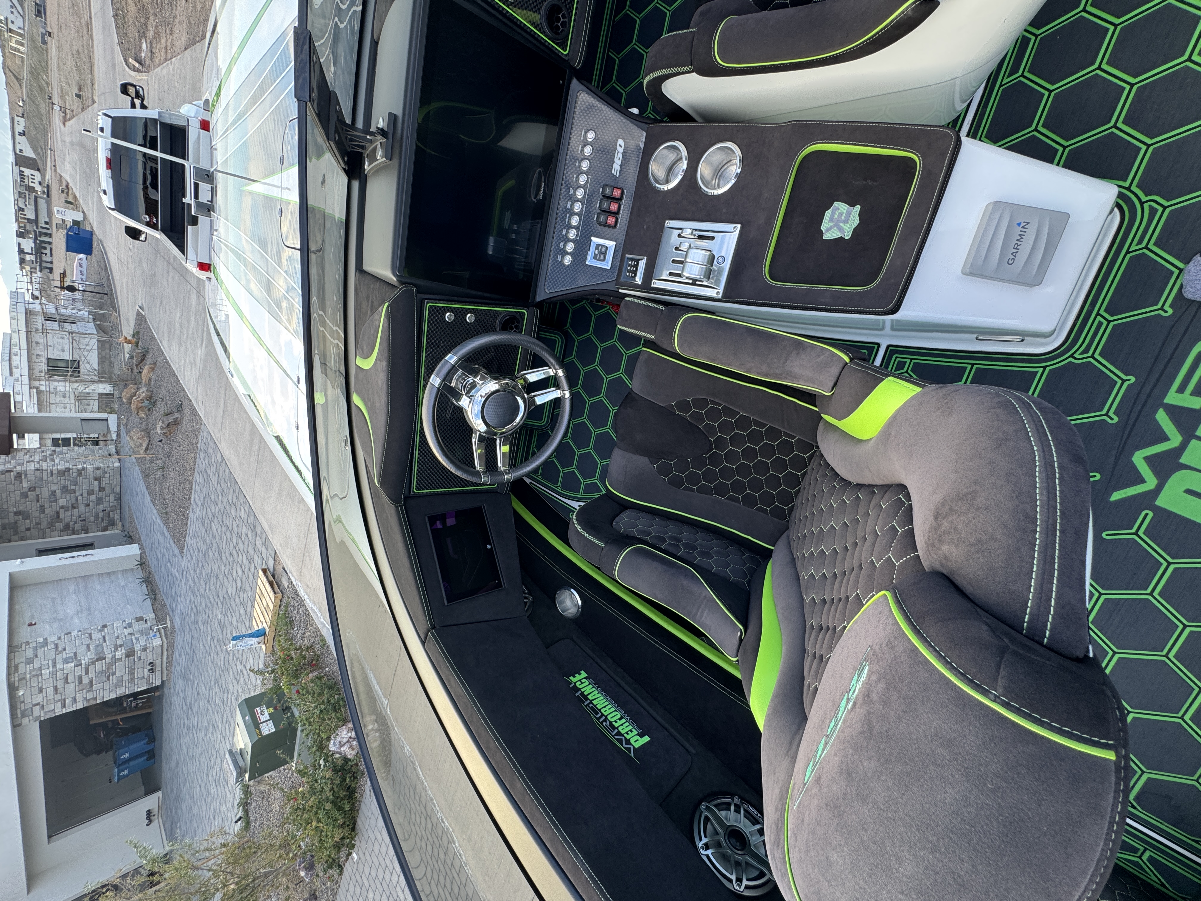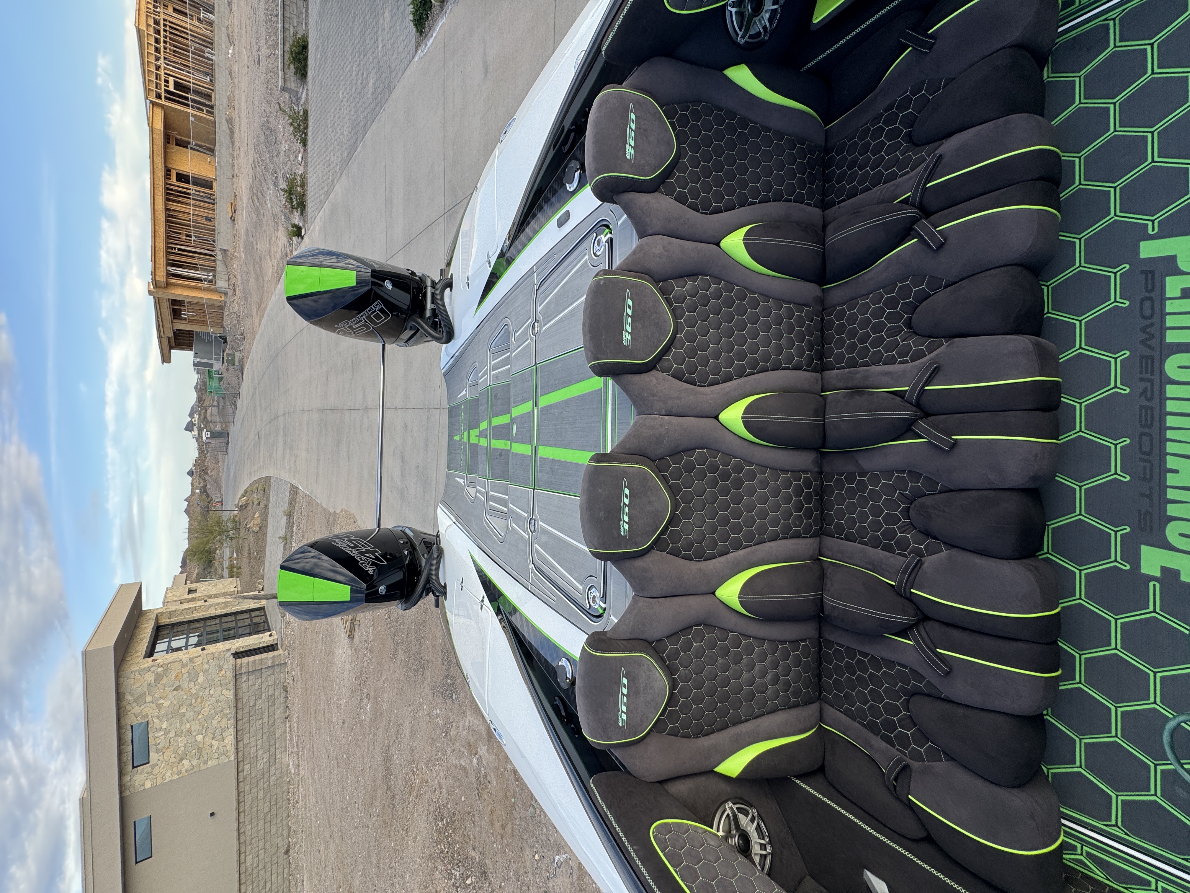 STANDARDFEATURES / EQUIPMENT Vacuum-baggede-Glass Epoxy / Carbon Fiber • Stringers & Bulkheads formed out of FoamCore / Carbon Fiber Reinforced • Faired Hull and Deck Joint, No Rub Rail • WrapAround Windshield • Biotech Switches • Lined Large Storage Locker Rear ofCockpit • Stainless Tie Bar • Billet Jack Plates • LED Nav and cockpit lighting• 4 AGM Batteries w/ Remote Dash Switch • Bilge Pumps w/ Automatic floatswitches • 3 Bank Battery Charger • Cockpit blower vent system • IlluminatedBillet Cockpit Handles • Carbon 8622 22" Display Dash • Pull outTelescoping Ladder • Carbon Fiber dash panels • Cup Holders by DTS • MercuryDTS Throttles and Shift • Fire Extinguisher with Billet Mount • SeaDek Flooring• Custom 6 person interior, Alcantara accents, Ultra Leather and Suede •Storage Compartments in Cockpit • Fusion Head Unit, JL Multi Channel AMP,Speakers Sub and box • Shadow Caster Underwater Lights, Cockpit and Bilgelights • Tilt Steering • Ista Steering wheel • Vessel View 903 • Mercury CNC 5Blade Cleaver Props • Demo Boat Style Paint • Full Boat Cover • Beautiful MycoTrailer, LED lights, Elec/Hyd Brakes, Mag Wheels UPGRADED OPTIONS Stage 2stereo , Rear Facing Camera, Additional mercury vessel view Power footrests , Painted White trailer, black Painted motors Carbon fiber in paint, Foot wash,